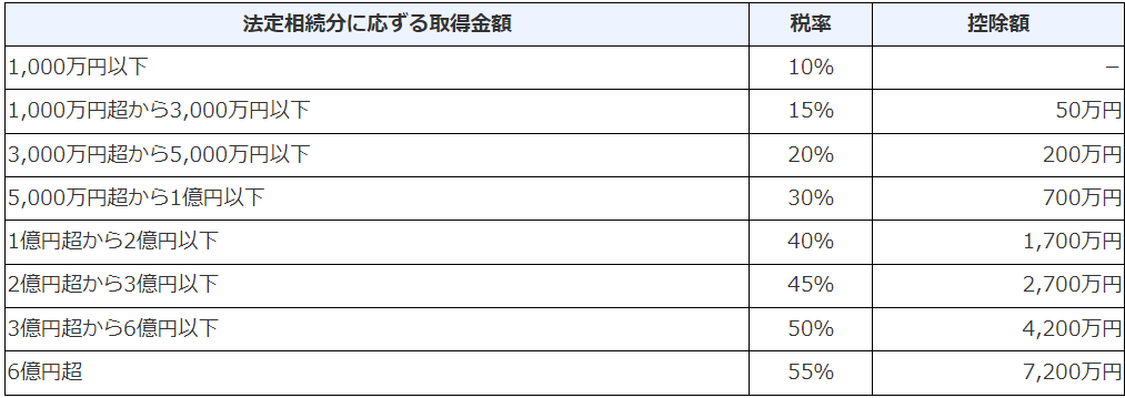 取得金額に、取得額が属するランクの税率をかけて算出した額から控除額を引いて税額を計算します。